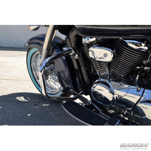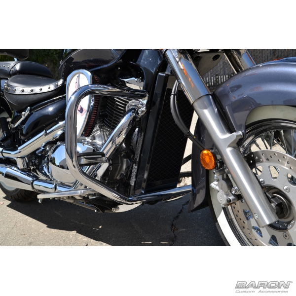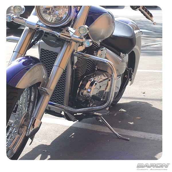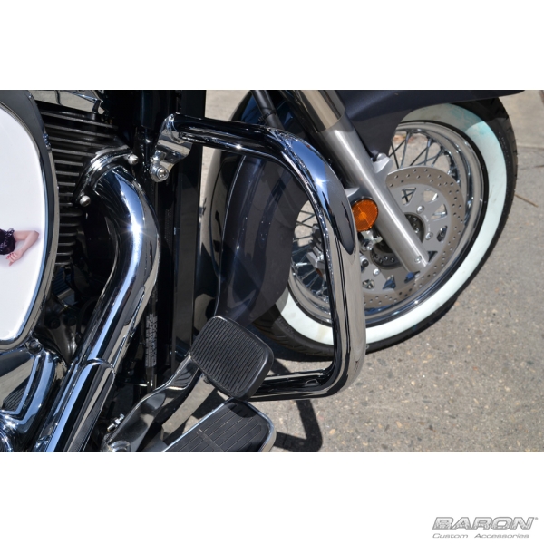 "On June 20, 2009 I began a 20 day trip from Kansas to Alaska on my Road Star. 32 miles south of Cody, Wyoming a deer stepped into my path. I had no time to react and ended up hitting the deer and going down. My ride clothing protected me but your engine guard saved me as well. It protected my left leg by keeping it from being pinned between the pavement and bike. It allowed me to slide free and kept the 800lb bike off me. It protected my bike's engine and frame from serious damage. Allowing me to rebuild the bike and ride it another day. I am thankful and just wanted to let you know that it was a great addition and I am grateful I added it to my bike. So, thank you for making such a wonderful product that looks good but protects even better. A thankful biker,"