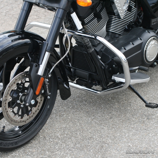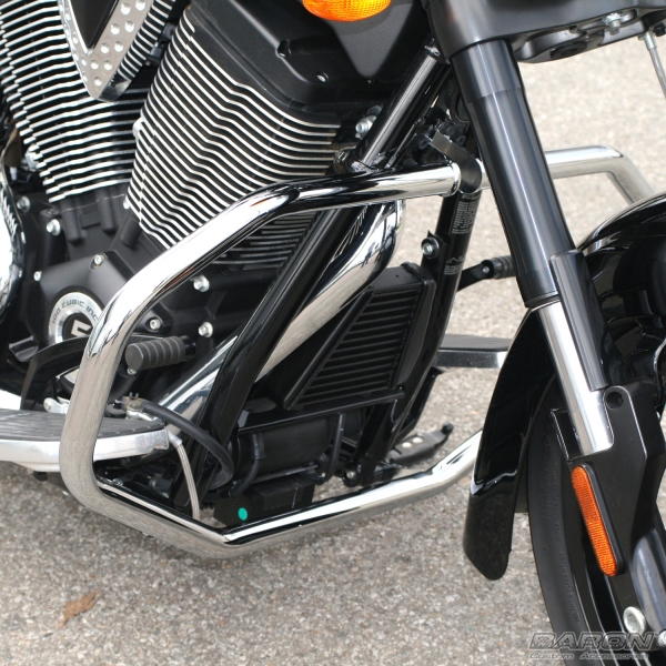 On June 20, 2009 I began a 20 day trip from Kansas to Alaska on my Road Star. 32 miles south of Cody, Wyoming a deer stepped into my path. I had no time to react and ended up hitting the deer and going down. My ride clothing protected me but your engine guard saved me as well. It protected my left leg by keeping it from being pinned between the pavement and bike. It allowed me to slide free and kept the 800lb bike off me. It protected my bike's engine and frame from serious damage. Allowing me to rebuild the bike and ride it another day. I am thankful and just wanted to let you know that it was a great addition and I am grateful I added it to my bike. So, thank you for making such a wonderful product that looks good but protects even better.